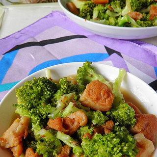 原料:西兰花、鸡柳、盐、葱、生抽、蚝油、香油。