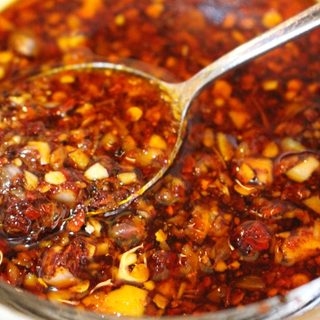 原料:辣椒粉、香油、植物油、花生粉、十三香、花椒、盐、葱、姜、蒜。