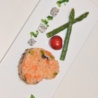 原料:米饭、牛肉、胡萝卜、西兰花、芦笋、番茄酱、盐。