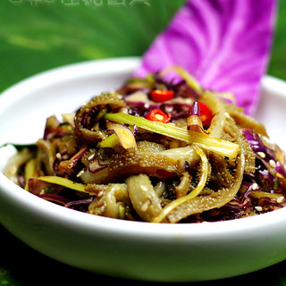 原料:千层肚、紫苏叶、紫甘蓝、黄瓜、芹菜、小米辣、小葱、青花椒粒、调和油、芝麻油、辣椒油、盐。