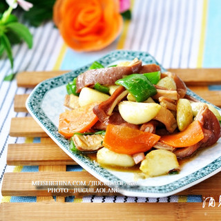 原料:猪肚、大蒜、青椒、胡萝卜、葱姜末、料酒、清汤、水淀粉、胡椒粉、盐、鸡精、酱油 、糖、大蒜油。