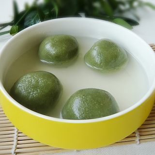 原料:糯米粉、绿茶粉、红豆沙。