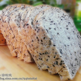原料:高粉、绵白糖、奶粉、全蛋液、水、酵母、盐、黄油、熟黑芝麻。