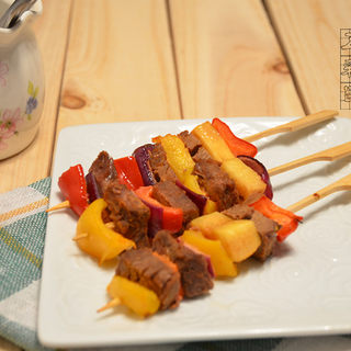 原料:梅花肉、苹果、洋葱、红椒、黄椒、大蒜、辣椒粉、蚝油、孜然粉、甜辣酱。