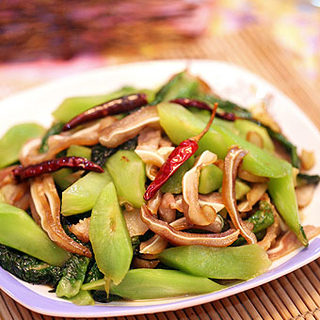 原料:猪耳朵、莴苣、蒜头、干辣椒、盐、鸡精。
