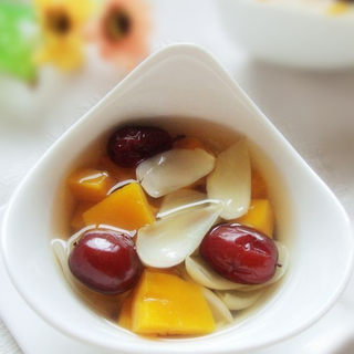 原料:鲜百合、香梨、莲藕、枸杞、冰糖。