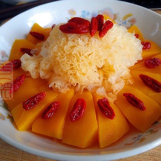 原料:南瓜、银耳、冰糖、枸杞。