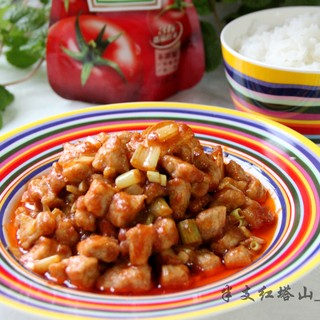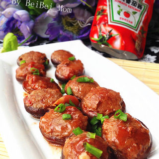 原料:猪肉、香菇、大蒜、大葱、盐、花生油、米酒、酱油、亨氏番茄酱。