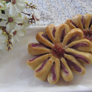原料:高筋面粉、低筋面粉、酸奶、盐、酵母、鸡蛋、紫薯馅。