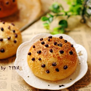 原料:高筋面粉、低筋面粉、细砂糖、酵母、鸡蛋液、奶粉、水、黄油、盐、蜜红豆、椰丝。