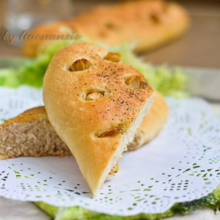 原料:面包粉、水、盐、糖、橄榄油、酵母、黑胡椒、大蒜。