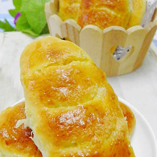 原料:高粉、发酵粉、牛奶、绵白糖、鸡蛋、盐、黄油、粗砂糖。