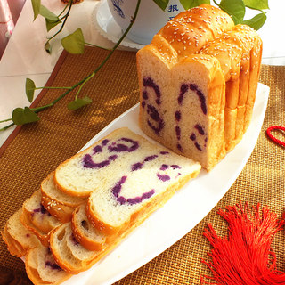原料:高粉、低粉、奶粉、鸡蛋、牛奶、糖、盐、酵母粉、黄油、蛋液、白芝麻。