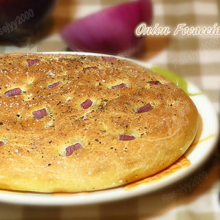 原料:高筋面粉、水、盐、面包机酵母、糖、橄榄油、橄榄油、黑椒粉、洋葱、海盐。