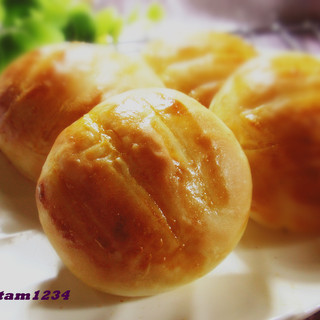 原料:面包粉、中筋面粉、卡仕达酱、无盐黄油、全蛋液、糖粉、盐、酵母、牛奶、脱皮白芝麻、表面装饰蛋液。