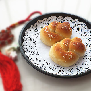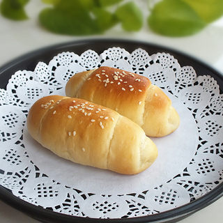 原料:面包粉、黄油、糖粉、全蛋液、盐、酵母、牛奶、温水、脱皮白芝麻、表面装饰蛋液。