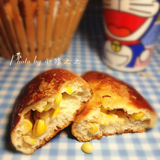 原料:高筋面粉、低筋面粉、鸡蛋、水、盐、糖、酵母、黄油、甜玉米、沙拉酱。