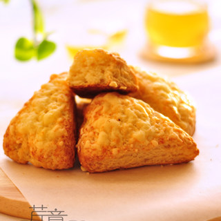 原料:低筋面粉、全麦粉、泡打粉、无盐黄油、白砂糖、盐、冷牛奶、切达奶酪、牛奶、切达奶酪。
