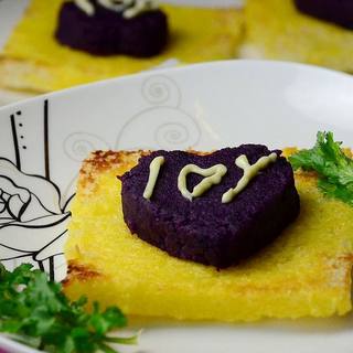 原料:土司、紫薯椰蓉馅、鸡蛋黄、葡萄籽油、丘比沙拉酱。