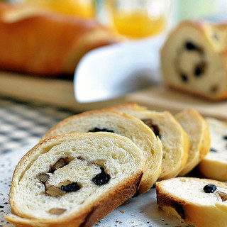 原料:低筋面粉、高筋面粉、牛奶、啤酒、蛋液、砂糖、酵母、葡萄干、核桃仁、盐。
