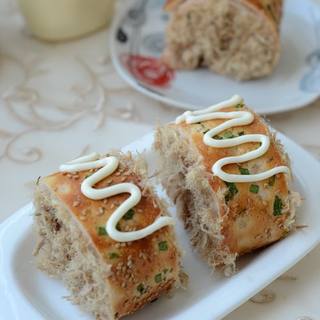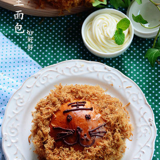 原料:高筋粉、干酵母、细砂糖、盐、全蛋、牛奶、黄油、丘比沙拉酱、肉松。