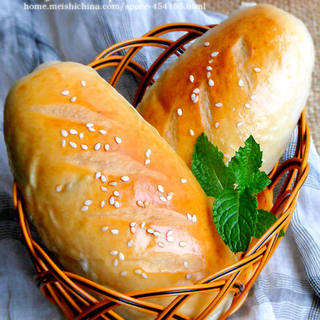 原料:高粉、清水、蛋液、奶粉、黄油、盐、糖、酵母、蜜红豆、蛋液、白芝麻。