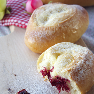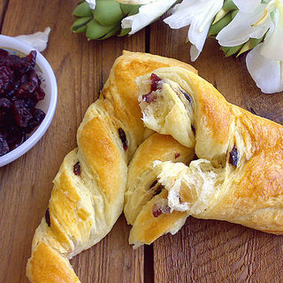 原料:高筋面粉、鸡蛋、水、蔓越莓、酵母、黄油、白糖。