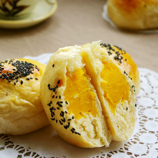 原料:高筋面粉、南瓜陷、牛奶、鸡蛋、黄油、糖、盐、酵母、黑芝麻。