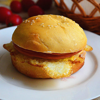 原料:高筋面粉、低筋面粉、牛奶、糖、盐、酵母、橄榄油、鸡蛋、白芝麻、火腿。