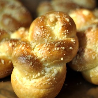 原料:高筋面粉、白砂糖、水、干酵母、盐、全蛋液、奶粉、黄油、黄油、糖粉、全蛋液。