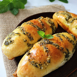 原料:高筋面粉、低粉、糖、盐、黄油、酵母、牛奶、薄荷、蒜、盐、沙拉、蛋液。