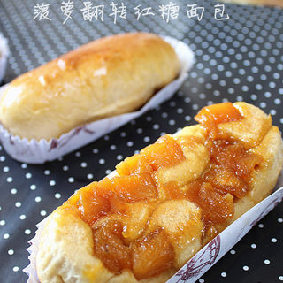 原料:高粉、红糖、牛奶、盐、菠萝、白砂糖、酵母、蛋液。