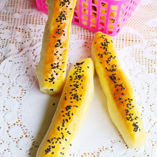原料:高筋面粉、牛奶、鸡蛋、酵母、糖、黄油、黑芝麻、盐。