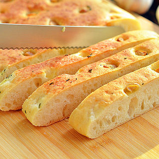 原料:金像高筋面粉、盐、即发干酵母、水、橄榄油、蒜瓣、橄榄油、新鲜迷迭香、盐。