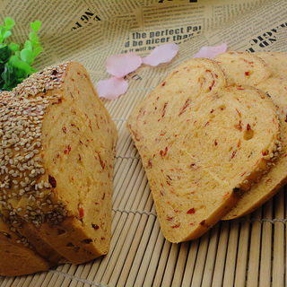 原料:高粉、糖、盐、酵母、水、红辣椒、橄榄油、白芝麻、蛋白。