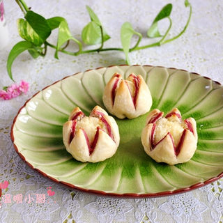 原料:低粉、糖、植物油、水、红曲粉、椰蓉、黄油、牛奶。