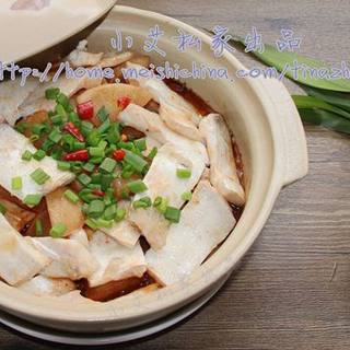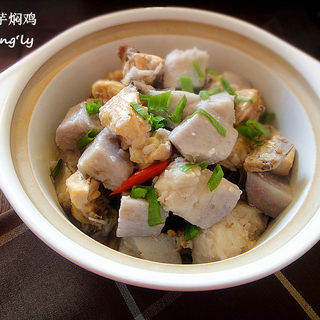 原料:荔浦芋头、三黄鸡、姜片、小米椒、花雕酒、盐、鸡精。