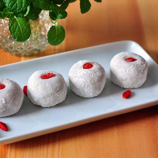 原料:铁棍山药、大枣、糕粉、枸杞子、糖粉。