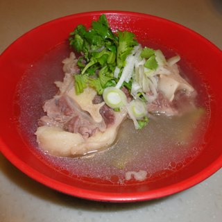 原料:牛尾、萝卜、葱花、香菜、姜片、食盐、味精、料酒。