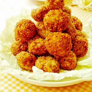 原料:鸡脯肉、白菜、姜、小葱、面包屑、盐、胡椒粉、白糖。
