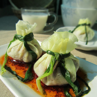 原料:榨菜、猪精肉、鸡蛋、生粉、韭菜、生姜、盐。