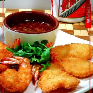 原料:大虾、鸡蛋、面粉、面包糠、盐、鸡粉、胡椒粉、绍酒、番茄酱、急汁、豉油、白糖、葱末、姜末、蒜末、香菇末、冬笋末、淀粉。