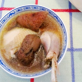 原料:土鸡、红菇、金华火腿、干贝、生姜、盐、胡椒粉。