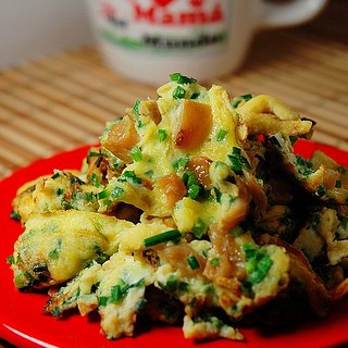 原料:海蛎、豆腐、水淀粉、香菇、盐、芝麻油、蒜片。