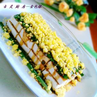原料:豆腐、韭菜、咸蛋黄、生抽、白糖、辣椒油、蒜蓉酱、老干妈、香油、鸡精、蚝油。