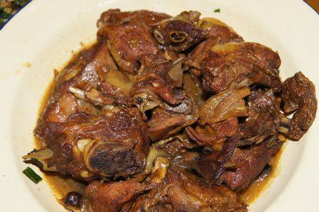 原料:鸡肉、啤酒、姜、蒜、卤料、老抽、盐。