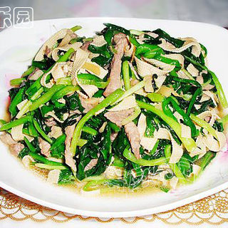原料:咸干笋、熟肉片、食用油、酱油、葱、十三香、鸡精、味精。