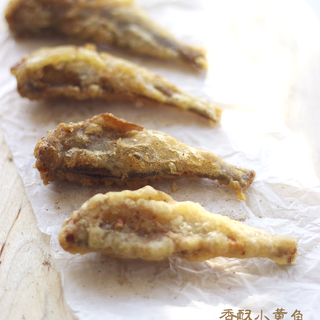 原料:去头小黄鱼、面粉、玉米淀粉、啤酒、姜丝、葱段、料酒、酱油、椒盐、五香粉、烧烤料。