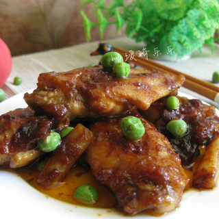 原料:鸡翅、西红柿、辣白菜汁、葱、姜、花椒、青豆、食用油、盐、糖、黑胡椒粉、酱油。