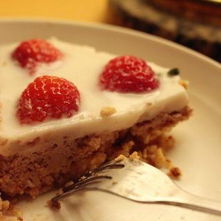 原料:海绵蛋糕胚、草莓、奶油奶酪、细砂糖、酸奶、鲜牛奶、吉利丁片、淡奶油、酥饼。